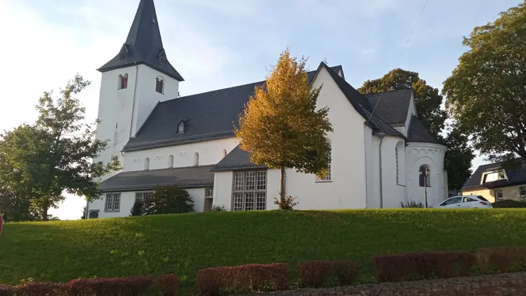 In der Kirche steht ein spätromanischer rheinischer Taufstein aus Mendiger Basalt. Um 1230 wurde er in der Andernacher Bauhütte hergestellt. Das zwölfeckige Becken zeugt einen Rundbogenfries und darüber einen um die sechs Kapitelle der tragenden Säulen herumgeführten Laubwerkfries.
