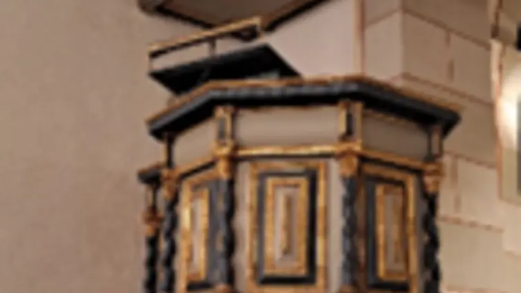 Barock leuchtet blau-gold bemalt die Kanzel, wie auch der - ungenutzte - Beichtstuhl im Seitenschiff. Im Zuge der Umbaumaßnahmen Ende des 17. Jahrhunderts wurde 1697 (Inschrift auf dem Kanzelfuß) eine neue, reich mit frühbarockem Schnitzwerk versehene Kanzel geschaffen. Interessanterweise findet sie in alten Baubeschreibungen von 1880 und 1910 keine Erwähnung. Am 29. Dezember 1935 starb auf dieser Kanzel Dekan Wilhelm Schardt während der Predigt.